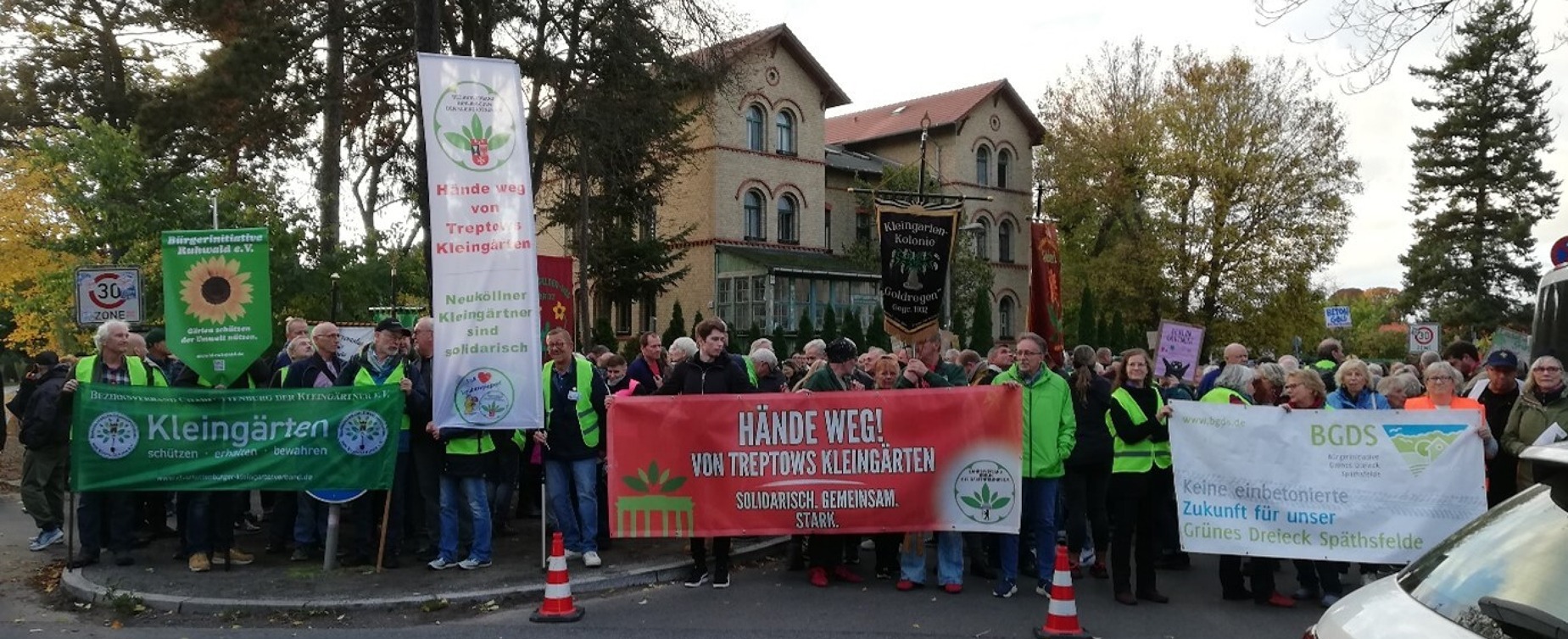 Hunderte demonstrieren für den Erhalt der Kleingärten in Treptow